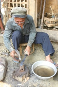 Project Phongsali: In the spirit of “swords into plowshares” a local blacksmith turns bomb fragments into useful tools.