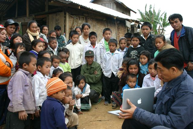 Yai and I showed Pome’s family the video that I made last year while they were at the COPE clinic. A sizable crowd of villagers, both old and young, invited themselves to the viewing and enjoyed seeing Pome on television, receiving treatment; he was a star and I felt briefly elevated from paparazzi to filmmaker.