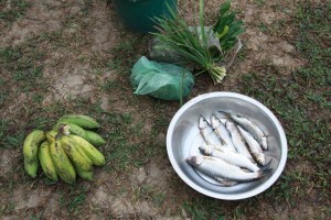 One popular use for dried fish is to pound them into a powder (skin, fins, scales, bones and all) and add it to soups and stews, or to a spicy sauce to compliment sticky rice. Smoked fish make an excellent lunch since they can be carried into the field, or to school, without fear of spoilage and then eaten as a compliment to ever-present rice.