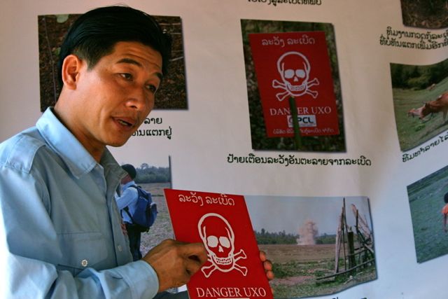 He eventually parlayed his gift of gab into a job as news anchor at Lao National Television. He enjoyed the stardom but discovered that in Laos news anchors are like cicadas: they “sing for free”. In search of better wages he left television and took employment with the UXO clearance company where his brother was working as an administrator. (In Lao, family connections often trump education or experience).