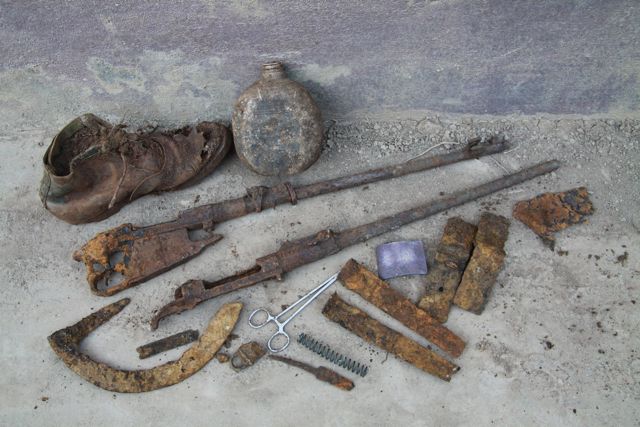 After forty years of weathering it would be unusual for us to find human remains, but when we find equipment like rifles, canteens, boots and belt buckles together, its likely that a soldier or porter died in that place. Its difficult for our deminers to search such areas but we need to make certain that UXO is not also on the site.