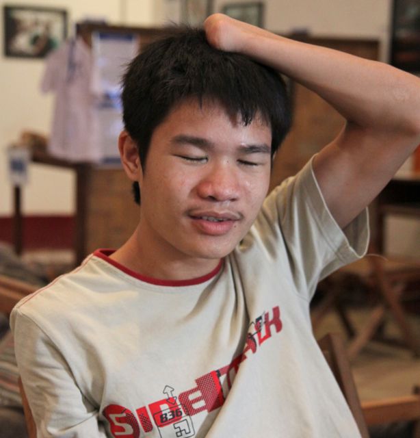 Pongsavath survived the ordeal but his student days are over. His dreams are dead. Could his future be any bleaker? He only survives here through the kindness of family, friends and benefactors. Laos does not afford many opportunities for a blind, double amputee.