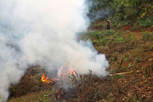Villagers clear fields ahead of our team, usually by burning grass and brush. Often, munitions explode while the fields burn so we insist that villagers burn far ahead of us. Too often villagers tending the fires venture too close and are killed.