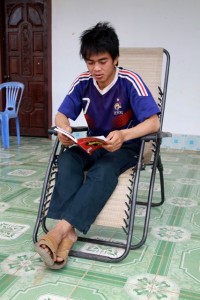 The term "lost literacy" refers to the fact that many villagers who have learned to read in school never have a chance, once they leave school, to read again. Shortly after teachers in Dak Den village introduced a check-out system, we began seeing older villagers reading books that children in their family brought home.